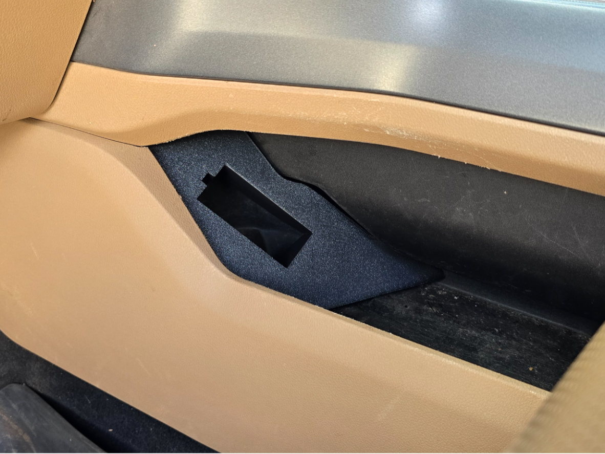 This 3D-printed side arm holster was designed for the 2023–2025 Ford F-250, modeled in Fusion 360 using a 3D scan of a 2025 Ford F-250 Lariat.