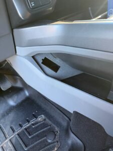 The holster fits perfectly into the driver-side lower console area, matching the factory trim angles and contours for a seamless OEM-style installation. It offers a secure, discreet, and ergonomic mounting point for your side arm while maintaining easy access and keeping the interior clean and organized.